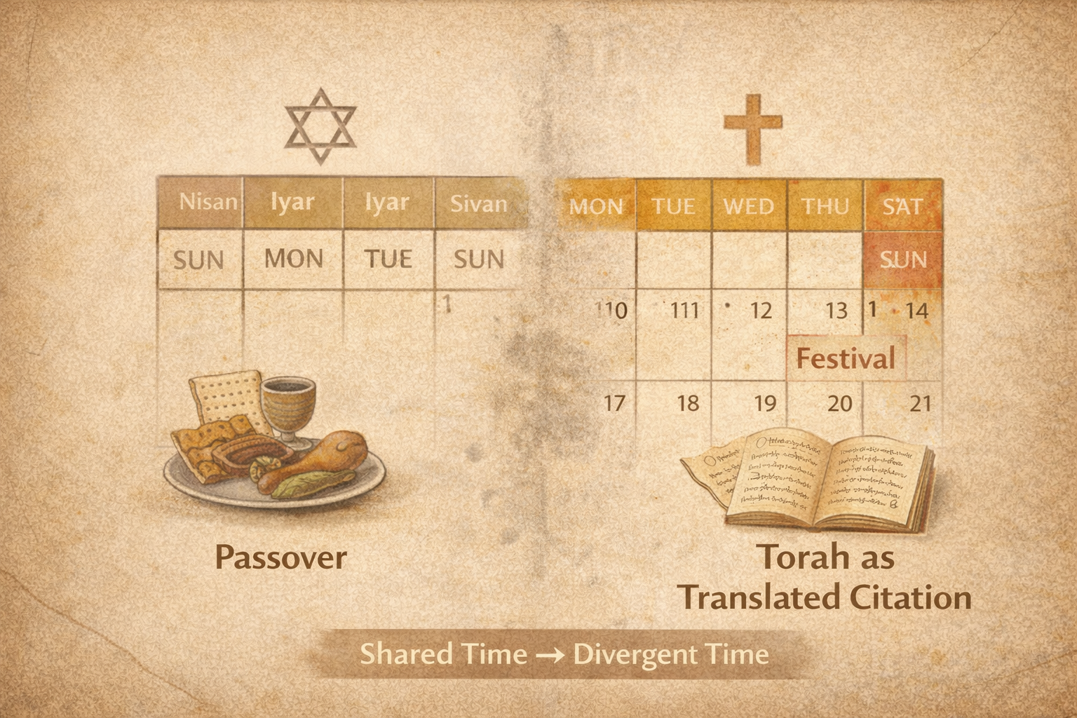 In the mid-first century, Jesus-following still sits inside Jewish communal life: calendar, food, synagogue habit, inherited argument. Over the next century, gentiles become the default reader. The texts stay Jewish, but Torah shifts from lived practice to translation, citation, and dispute. Separation is not a single break. It is a slow set of pressures: letters becoming doctrine, calendars drifting, meals turning into boundary tests, Roman taxation forcing identity sorting, and prayer functioning as a public test of belonging.